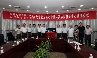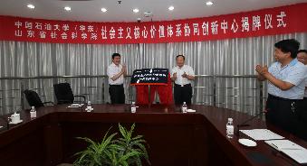 7月21日上午,威尼斯金沙欢乐娱人城(华东)和山东省社会科学院联合组建的“社会主义核心价值体系协同创新中心”举行揭牌仪式,我校副校长李兆敏教授与山东省社科院党委书记唐洲雁教授共同为中心揭牌。仪式由威尼斯金沙欢乐娱人城司江伟教授主持,学院部分教师和学生代表参加会议。