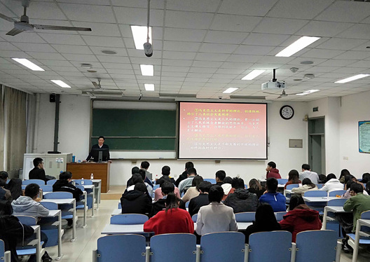 活动伊始,邵鹏同学向大家介绍了青年研习会的具体情况以及理论学习月活动的主要内容。随后,于洋同学向大家分享了自己的个人经历,并以此激励大家艰苦奋斗、不忘初心、感恩自强。他表示,自己受益于国家福利体系制度,并希望将来能够支援西部、报效祖国。接着,张荣华教授开展了以“习近平谈马克思、谈青年、谈改革开放”为主题的讲座。讲座上,张荣华带领大家深入学习了习近平在纪念马克思诞辰200周年大会上的讲话,并谈道,马克思主义是科学的理论,创造性的揭示了人类社会发展规律,马克思主义是实践的理论,指引着人民改造世界的行动,马克思主义不仅深刻改变了世界,也深刻改变了中国。最后,杜承泽同学对张荣华教授的讲座做了总结,他谈道,作为当代青年人,要以新思想为指引,贯彻习近平总书记系列讲话精神,提升自己的马克思主义素养,实现石大青年学子对新思想的真懂真信,真学真用。