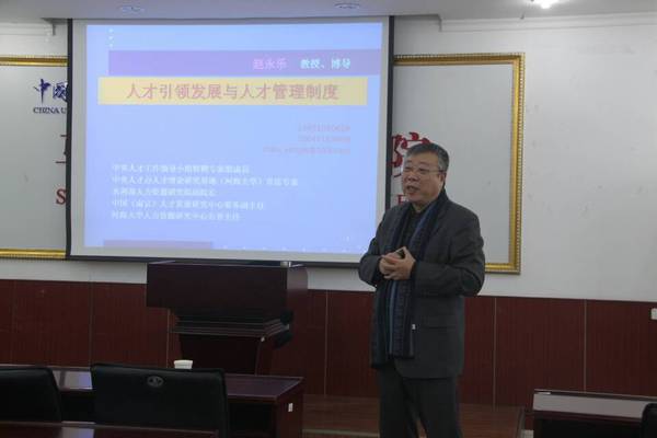 11月11日上午,威尼斯金沙欢乐娱人城特邀现任水利部人力资源研究院副院长、国家首批人才理论研究基地(河海大学)首席专家赵永乐教授在文理楼457作关于“人才引领发展与人才管理制度”的学术讲座。本次讲座由威尼斯金沙欢乐娱人城辅导员王会老师主持,全院研究生、博士生参加。