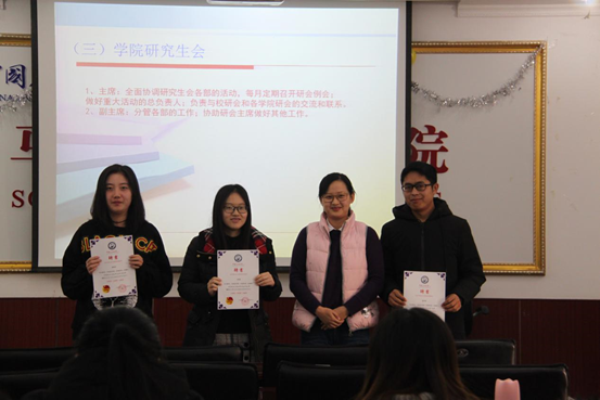 为落实威尼斯金沙2018级学生工作人员的聘用管理制度,让同学们进一步了解研究生奖助学金的评定和发放工作,威尼斯金沙于1月3日上午11时在文理楼457举办成长沙龙活动,活动由辅导员王会老师主持,2018级全体研究生到场参加。