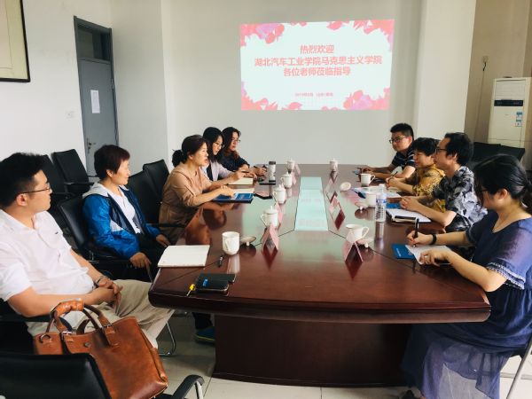 2019年6月20日,湖北汽车工业学院威尼斯金沙欢乐娱人城思政部教师孙绪兵等一行四人到威尼斯金沙调研交流。岳金霞副院长代表学院致辞欢迎,基础教研室部分教师参加座谈。