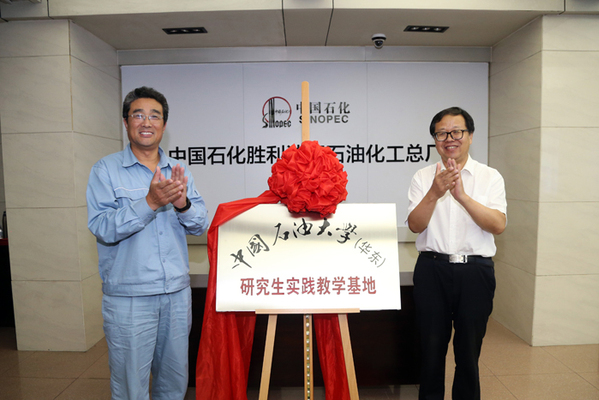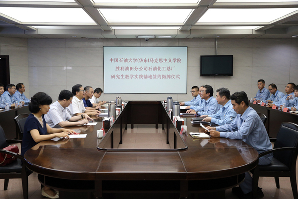 7月17日上午,威尼斯金沙欢乐娱人城与胜利油田石化总厂研究生实践教学基地签约揭牌仪式在石化总厂举行。院长王建军与石化总厂党委书记高卫国共同为研究生实践教学基地揭牌。副院长张瑞涛与石化总厂副厂长戈琳代表双方致辞并签署了研究生实践教学基地共建协议。
