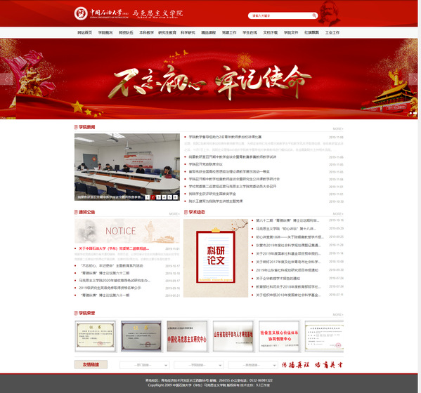 作为学院的综合性门户网站,学院主页是社会各界认识马院、了解马院、联系马院的重要平台。长期以来学院高度重视网络宣传阵地的建设,本学期对学院网站进行了更新,调整了版面设置,新增学院荣誉、学术动态、科研论文、党建动态等板块,对红旗飘飘、学生在线等子页面进行了调整,对所有教师信息进行了更新,统一拍摄工作照,集中更换个人简介。新网站更加美观大气,实用性强,已成为学院对内服务、对外宣传、塑造形象、传递信息的重要渠道。
