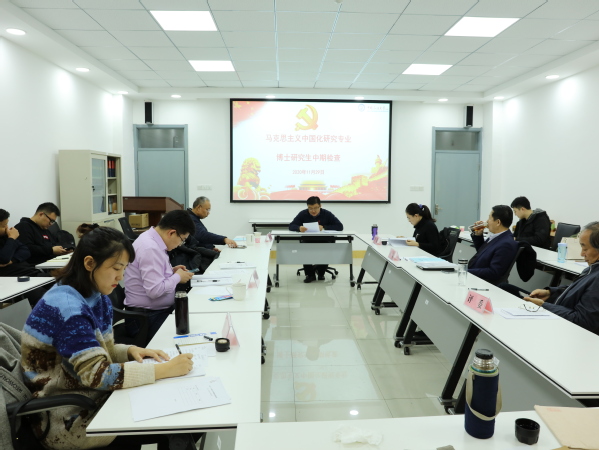 2020年11月29日下午,威尼斯金沙在459举行了马克思主义中国化研究专业博士学位论文中期检查会。本次中期检查委员会主席由山东大学威尼斯金沙欢乐娱人城副院长、博士生导师郑敬斌教授担任,国务院学位委员会学科评议组成员、吉林大学党委宣传部部长韩喜平教授以及威尼斯金沙张荣华教授、夏从亚教授、张福运教授、潘娜娜教授担任中期检查委员会委员,评委会秘书为2020级博士生魏然同学。王建军院长、张瑞涛副院长出席中期检查会,在读博士生旁听观摩。