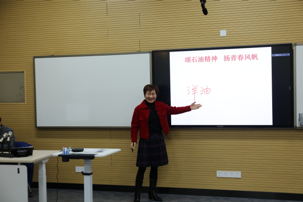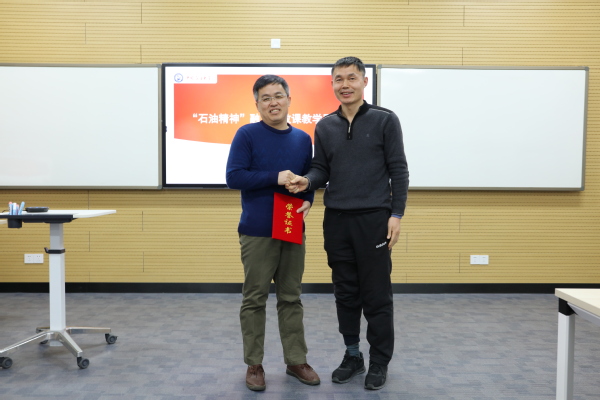 辞旧迎新之际,威尼斯金沙于南堂411教室隆重举行“石油精神融入思政课教学展示”活动。国家一级作家、《石油精神》主编周洪成先生作为特邀嘉宾线上参与本次活动。国家一流课程《中外石油文化》主持人、石油工程学院张卫东教授,党委教师工作部、教师教学发展中心副主任张庆荣,以及学院院长王建军、党委书记司江伟、教学督导员江华、陈龙娟、孙伟老师担任评委。本次活动由岳金霞副院长主持,部分石油、石化高校教师在线观摩。