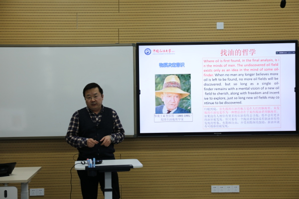 选手们展示完毕,周洪成先生在线对8位老师进行点评,指出8位选手是“八仙过海,各显神通”,都很好的将石油精神融入了思政课,很好落实了创新思政课的意见。他还以“新时代石油精神和石化传统研究”为题,为大家作了学术讲座。