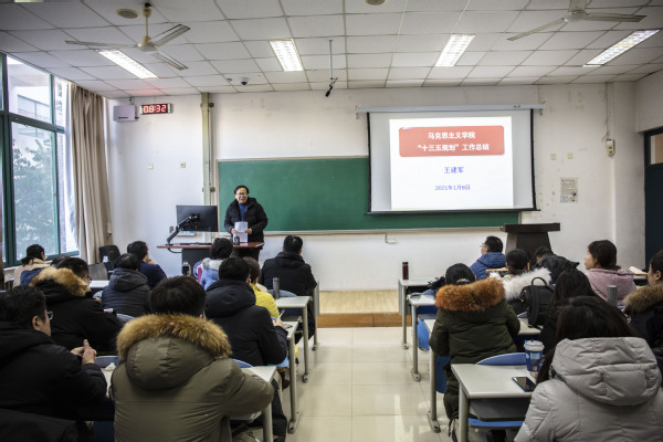 王建军院长首先总结了威尼斯金沙欢乐娱人城“十三五”期间的工作。他指出,“十三五”期间,我们抓住机遇,积极作为,完善学院治理结构,强化学院文化建设,在学科建设、平台建设、 科学研究、教研教改等方面都取得了标志性成果和突破性发展。主要表现在:2017年第四次学科评估,威尼斯金沙马克思主义理论学科评估结果为B档,百分位次20—30%;2018年又获批马克思主义理论一级学科博士点;教学成果获得省级一等奖一项、科研成果获得省级二等奖一项。这些成绩的获得进一步提高了威尼斯金沙的办学层次,提升了威尼斯金沙在同类高校中的地位,为学院今后的发展奠定了扎实的基础。