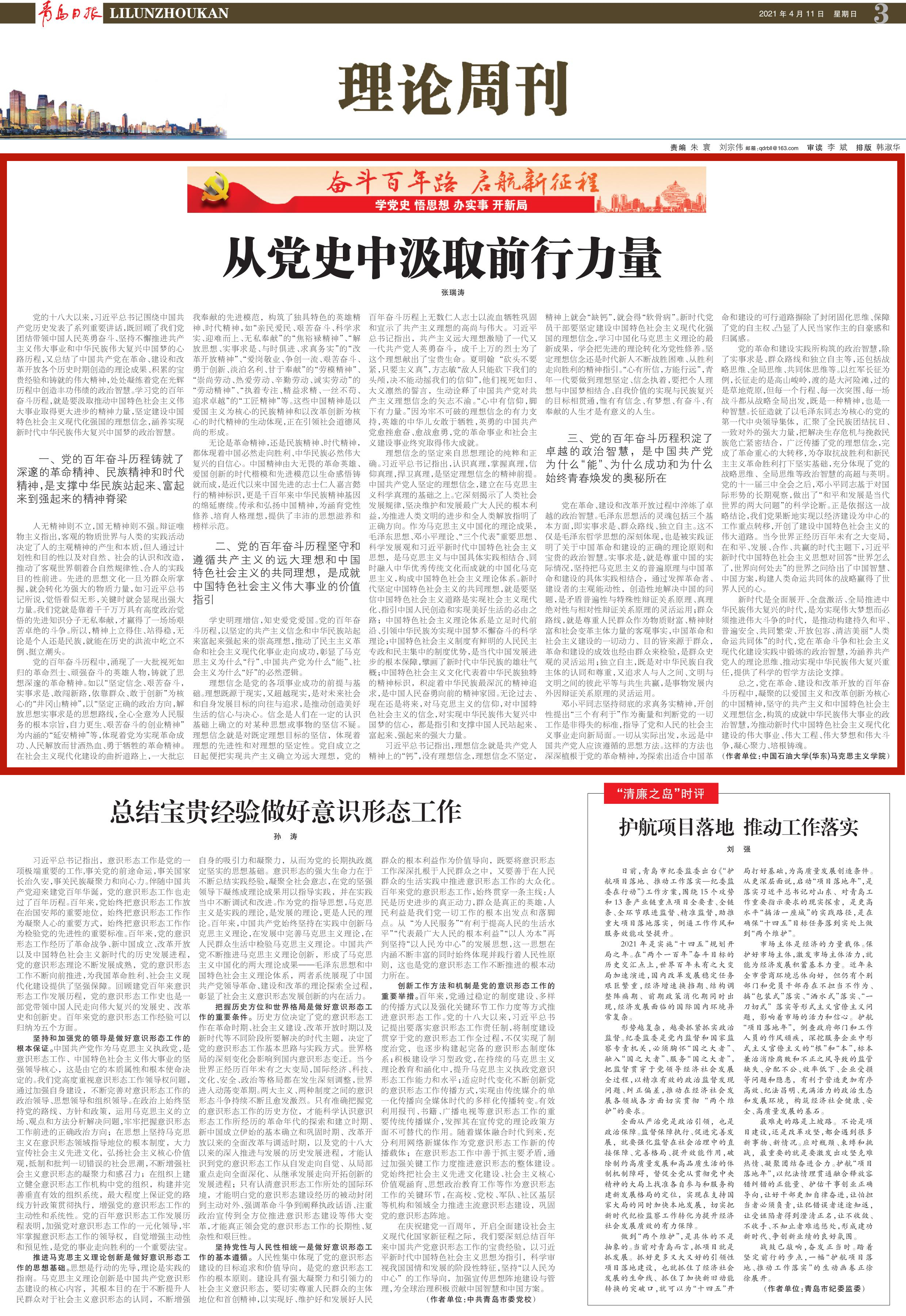 2021年4月11日,《青岛日报》第3版(理论版)刊发威尼斯金沙张瑞涛教授理论文章《从党史中汲取前行力量》。