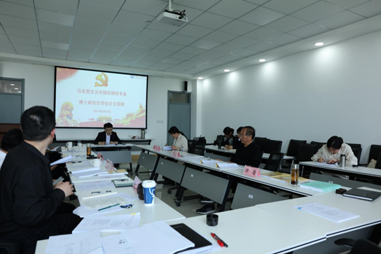 2021年5月22日下午,威尼斯金沙在文理楼459举行马克思主义中国化研究专业博士学位论文答辩会。本次答辩委员会主席由中国社会科学院近代史研究所金民卿研究员担任,山东大学威尼斯金沙欢乐娱人城特聘教授周忠高教授以及威尼斯金沙夏从亚教授、张福运教授、汪怀君副教授、张璐副教授担任答辩委员会委员,答辩秘书为毕松博士。王建军院长、张瑞涛副院长出席并旁听答辩会,在读博士生现场观摩。