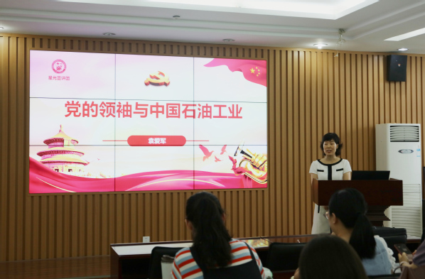 袁书记首先从一个石油生产视频为切入点,使同学们对石油生产有了一个简要的了解。接下来袁书记按照时间顺序,带领同学们回顾了党领导下的石油工业发展史,并将石油工业发展史分为四个历史时期:中华人民共和国成立初期艰苦探索时期、大庆会战快速发展期、改革开放迅猛发展时期、以及新时代需进一步弘扬石油精神,进而总结出四方面的历史启示。第一,党的领导是石油工业发展的根本保证;第二,石油人的拼搏奉献是石油工业发展的基础;第三,石油精神是党领导下石油工业发展的宝贵精神财富;第四,青年一代要坚定理想信念,勇担时代使命。作为青年人应进一步学习与发扬“爱国、创业、求实、奉献”的大庆精神铁人精神,树立好自己的理想与信念,规划好自己的学习和人生。